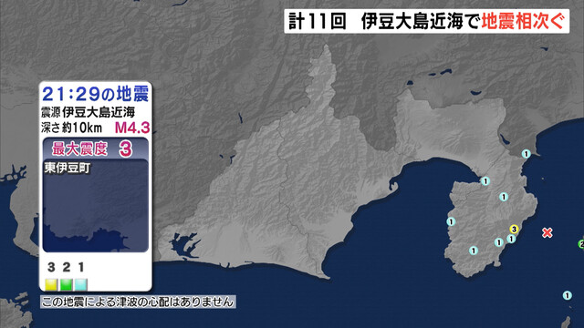 静岡県ニュース > 東伊豆町で震度3など 計11回 伊豆大島近海で地震相次ぐ(静岡県)(静岡放
