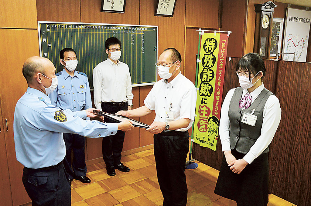 詐欺被害未然防止 下田署が感謝状 JA伊豆太陽の支店に|あなたの静岡新聞