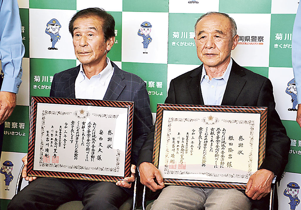 地域安全推進員2人に感謝状 菊川署管内防犯協など|あなたの静岡新聞 - @