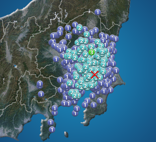 茨城県南部で震度3の地震発生 東京は震度2 - ウェザーニュース https://t.c