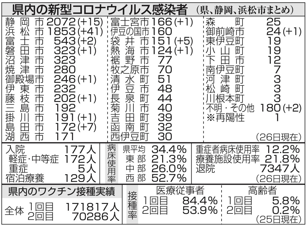 計79人感染、浜松は最多41人 26日の静岡県内【新型コロナ】(あなたの静岡