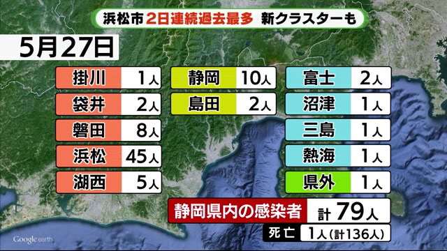 静岡県ニュース > 【新型コロナ】浜松市2日連続で過去最高 高齢者施設でクラスターも(テレ