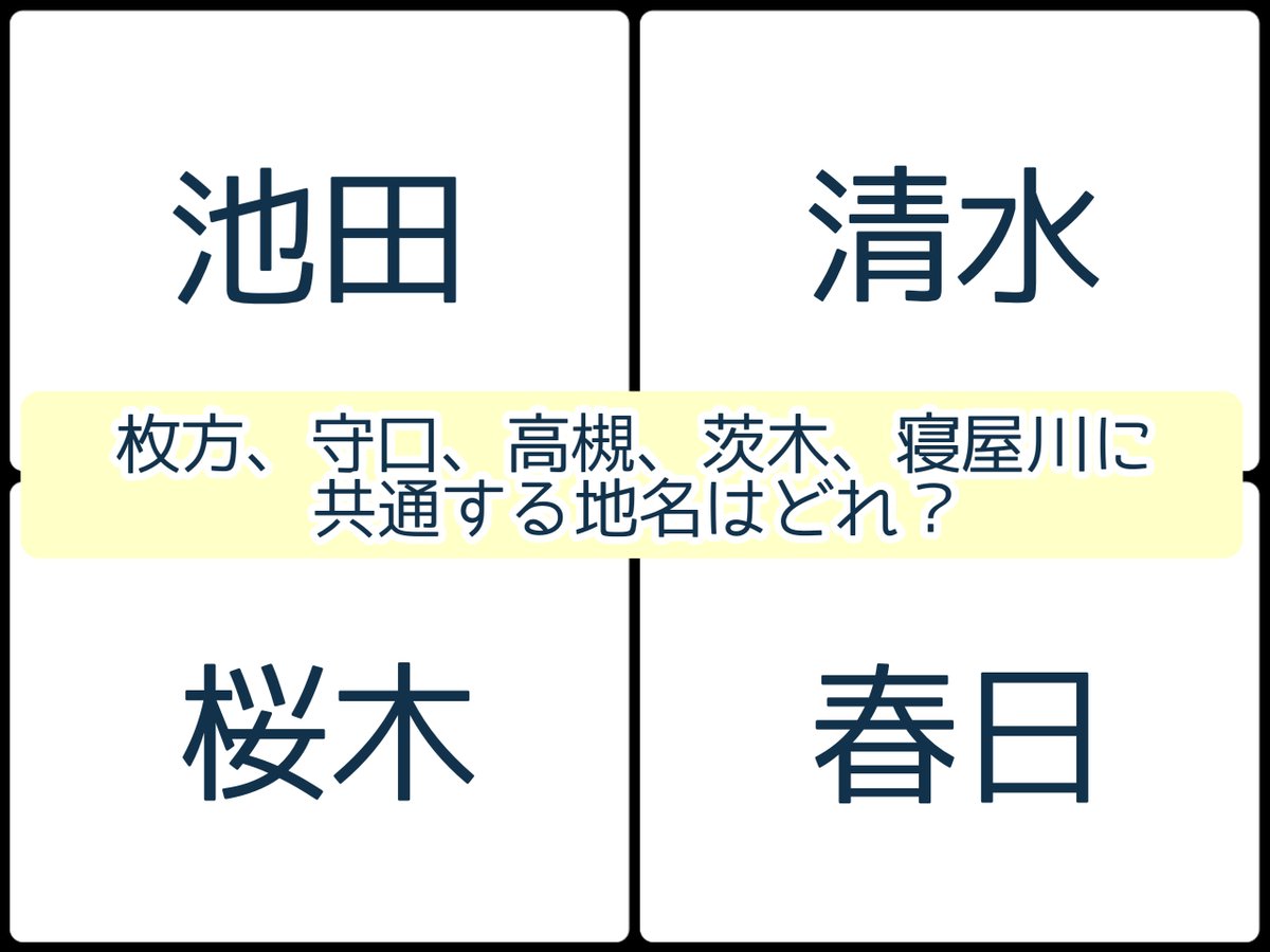 枚方、守口、高槻、茨木、寝屋川に共通する地名はどれ?【寝屋川クイズ#310】 – 寝屋川つーしん https://t.co/foVQi3pNCU #静岡県 #静岡県東部 #清水町 https://t.co/Z0ynYPw4Yi