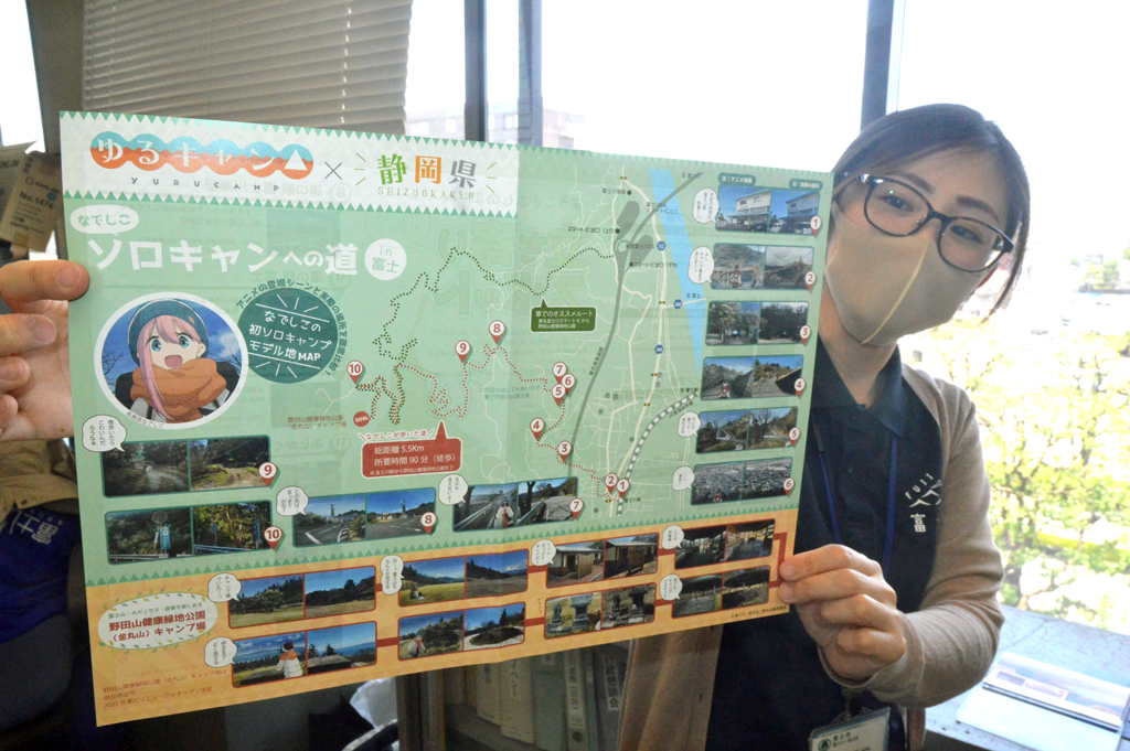 人気漫画「ゆるキャン△」マップ制作 富士市 モデルのキャンプ場、道のり紹