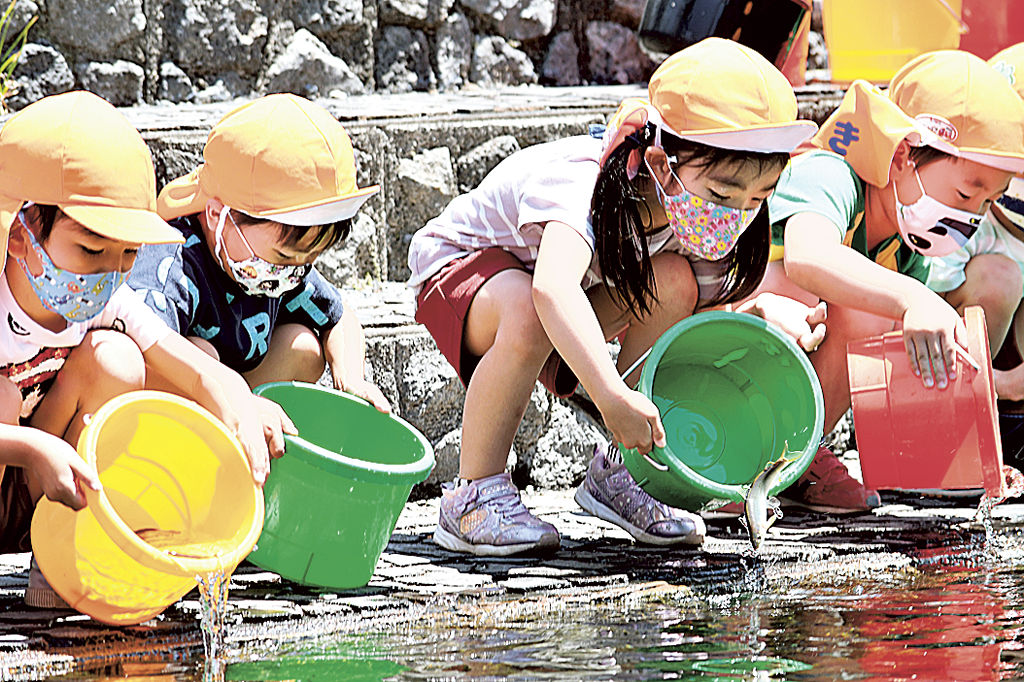 稚アユ放流「元気でね」 富士で園児90人|あなたの静岡新聞 - @S[アッ