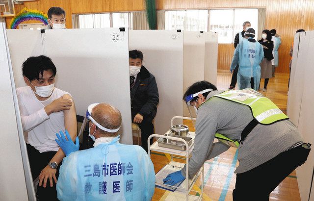 <新型コロナ>ワクチン接種 三島市、独自方式で訓練 時間短縮し高齢者の負