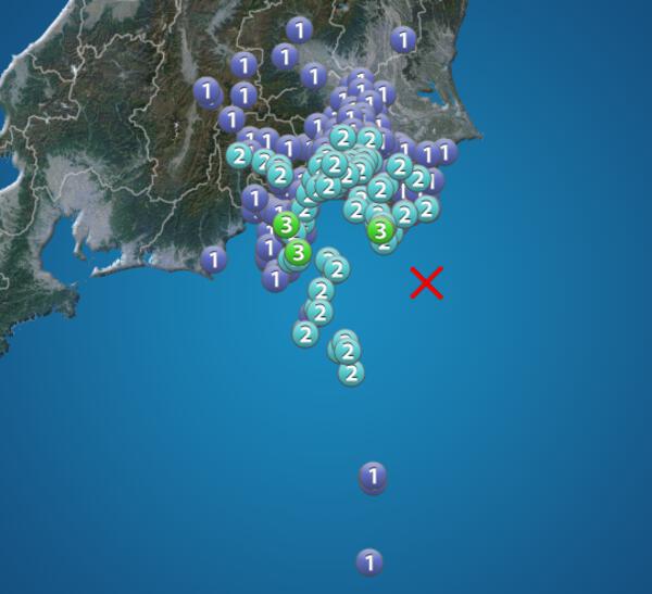 千葉県南東沖で地震 千葉・静岡で震度3 津波の心配なし - https://t.co/zlA