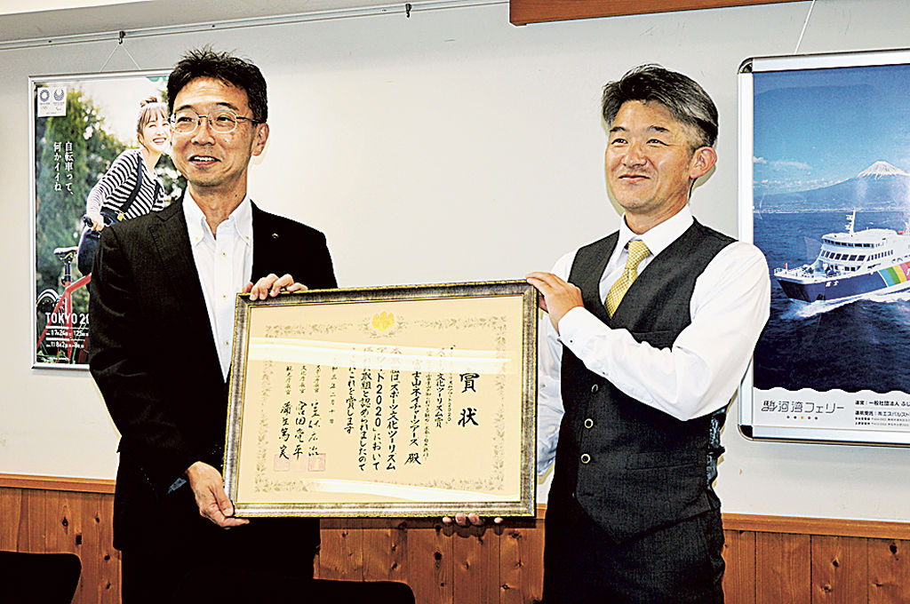 岩崎さん(富士宮)大賞 県に報告 スポーツ文化ツーリズム賞 富士山下山ツ