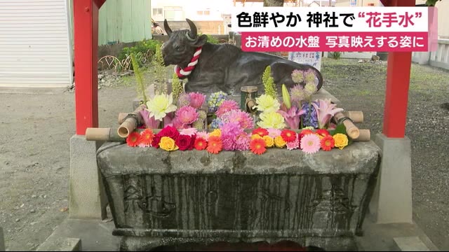 神社に花手水 お清めの水盤を色鮮やかに SNSで話題 静岡・富士市(テレ