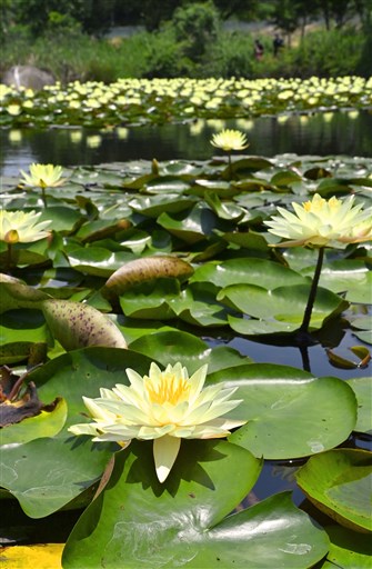 スイレン咲き誇り、水面彩る 熊本市の坪井川緑地(熊本日日新聞) - Yahoo!