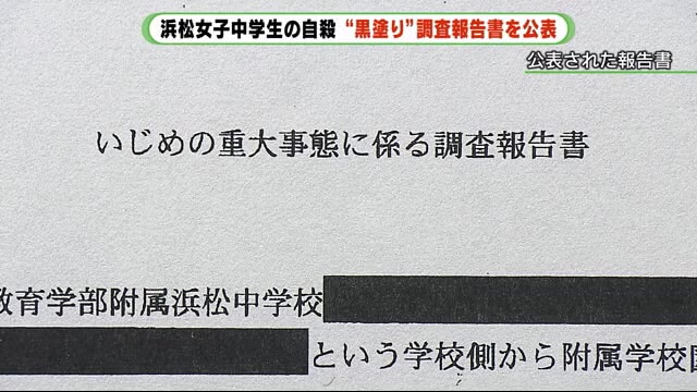 静岡県ニュース > いじめ調査報告書を公表も大部分は黒塗りに 浜松市・女子中学生の自殺(テ
