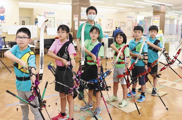 開設2年 射止めた↗ 全国切符 湖南・アーチェリークラブの小学生6人 - 中