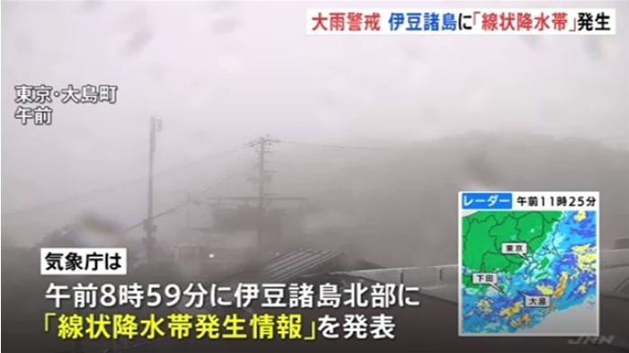 伊豆諸島北部に「線状降水帯」発生、激しい雨と土砂災害に警戒 - TBS NEWS