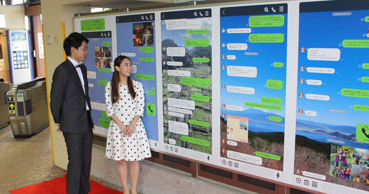 LINE画面風看板でPR 男女のやりとり、伊豆の住みやすさ訴え - 毎日新聞 -