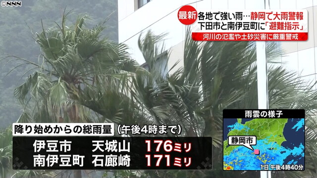 大雨警報 下田市と南伊豆町に「避難指示」(日本テレビ系(NNN)) - Yahoo