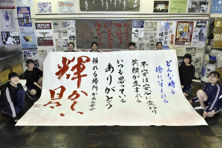 三島・川之江高書道部、医療従事者に感謝の書したためる 「元気に、笑顔に