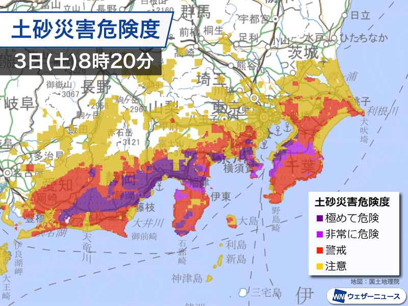 静岡から神奈川、千葉は土砂災害危険度が高い 箱根は24時間500mm超の大雨 -