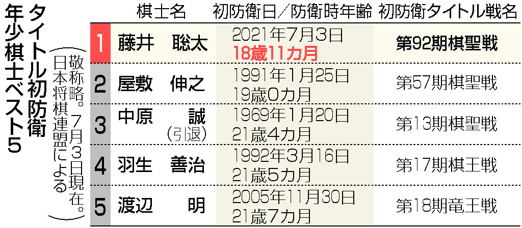 【図解】藤井二冠が棋聖初防衛=3連勝で最年少記録更新―18歳、初の九段に(