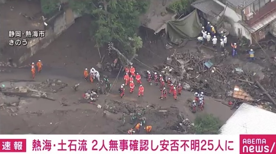 熱海市の土砂災害 2人の無事を確認 安否不明は25人に(ABEMA TIMES) - Yah