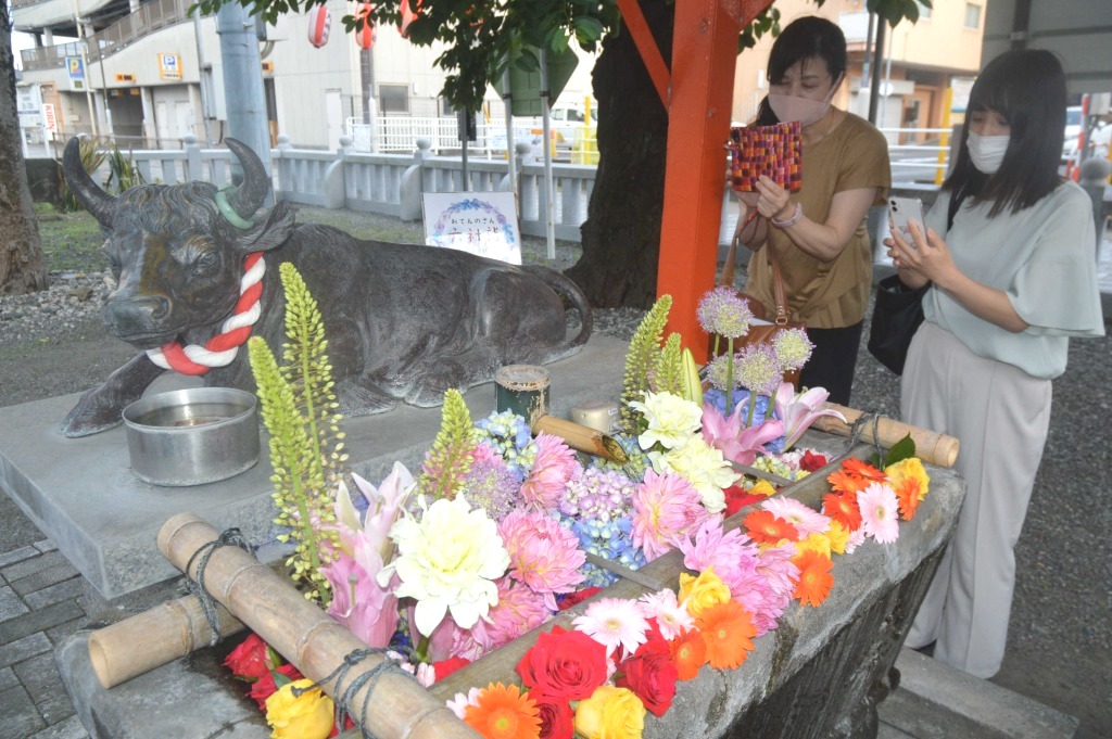 彩り鮮やか「花手水」 富士・吉原祇園祭中止の6神社、ライトアップも - 47