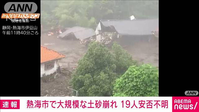 熱海市で大規模な土砂崩れ 19人の安否不明(テレビ朝日系(ANN)) - Yahoo