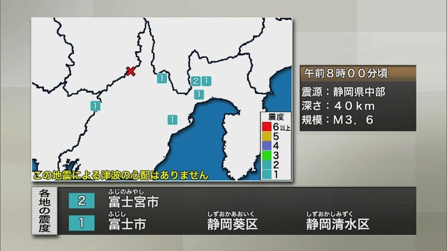 静岡県ニュース > 静岡県富士宮市で震度2、伊豆大島近海の有感地震は12回(静岡朝日テレビ)