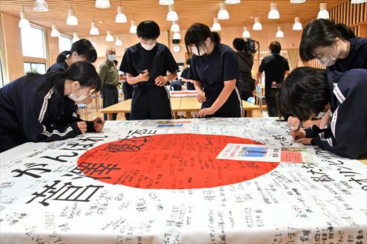 双葉郡の五輪選手を応援 7選手に激励メッセージフラッグ 福島・楢葉中生ら