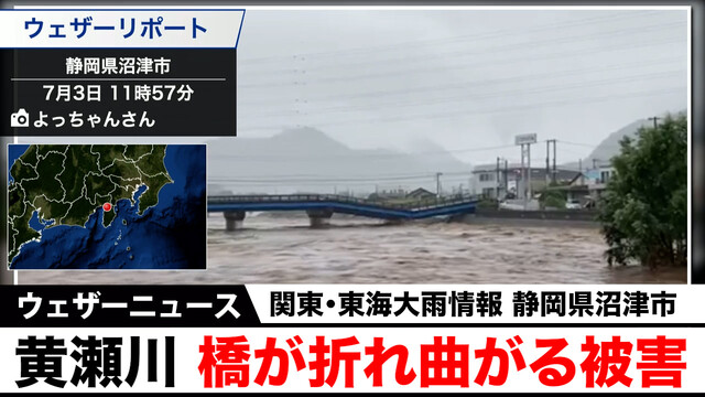 静岡県ニュースでは、静岡県エリアの主要ニュースやお得な情報など配信していきます。>動画 関東・東海大雨情報 静岡県沼津市黄瀬川 橋が折れ曲がる被害(ウェザ