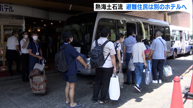 熱海土石流 避難住民が2カ所のホテルに移動(静岡市)(静岡放送(SBS))