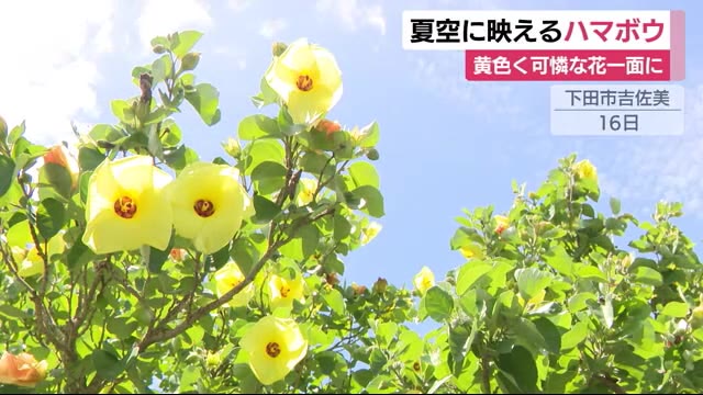 青空バックに黄色の花 川辺彩るハマボウ 静岡・下田市(テレビ静岡NEWS) -