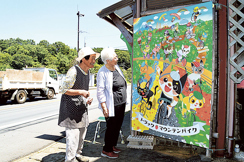 自転車楽しむ猫のイラスト看板設置 伊豆の県道沿い|あなたの静岡新聞 - @