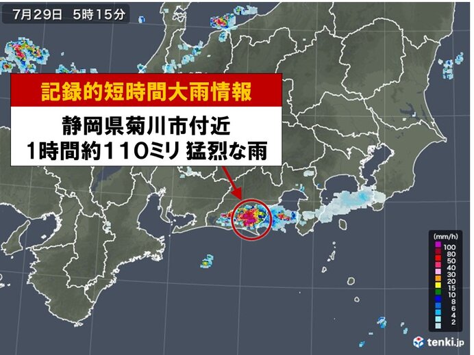 静岡県で約110ミリ「記録的短時間大雨情報」(気象予報士 日直主任 2021年07