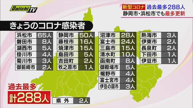 【新型コロナ】過去最多288人の感染発表(Daiichi-TV(静岡第一テレビ)