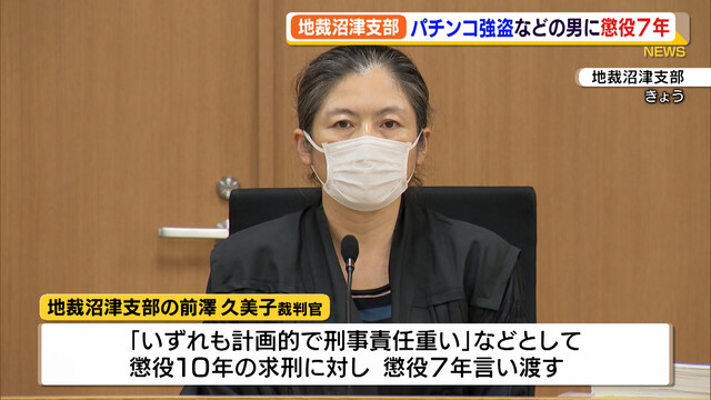 パチンコ強盗など複数の強盗を起こした男に懲役7年の判決(静岡県)(静岡