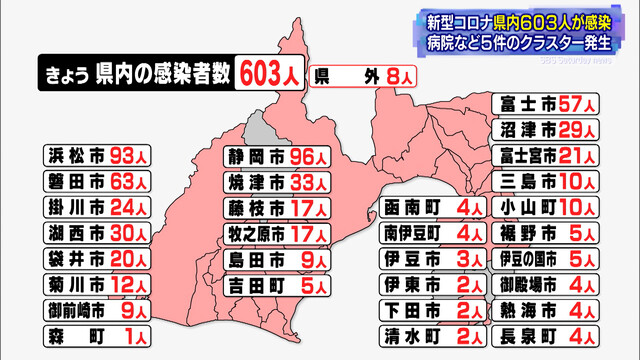 静岡県ニュース > 【新型コロナ】静岡県内603人感染 病院など5件のクラスター発生(静岡放送