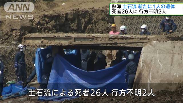 熱海土石流 新たに1遺体発見で死者26人に2人不明(テレビ朝日系(ANN)) -