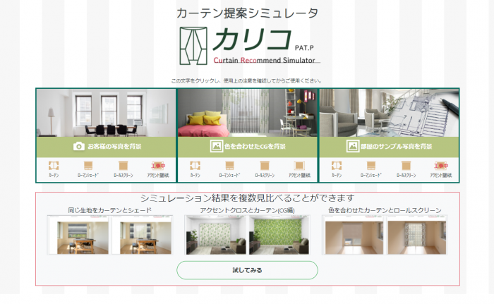 WEB上でお部屋に似合うカーテンを提案するカーテン提案シミュレータ“カリコ