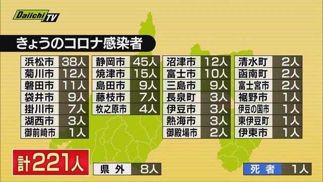新型コロナ221人感染 1人死亡(Daiichi-TV(静岡第一テレビ)) - Yaho