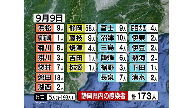 【静岡・新型コロナ】新規感染173人死者5人 藤枝の事業所でクラスタ-
