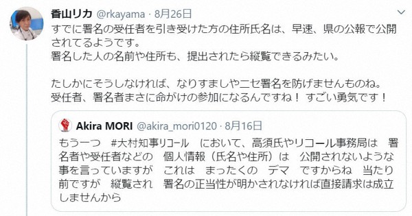 Fact・Check:ミスリード 愛知県知事リコール運動、香山氏「受任
