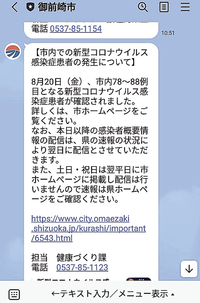 感染者数「情報なぜ翌日?」 御前崎市のLINE配信に疑問の声 - 47NEWS h