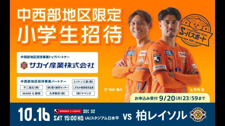 10/16(土) J1リーグ 柏戦 中西部地区小学生限定 親子招待企画実施のお知ら