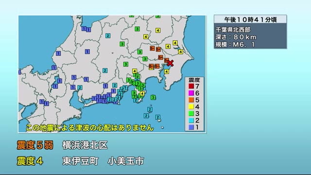 首都圏で震度5強 静岡県内は東伊豆町で最大4(テレビ静岡NEWS) - Yahoo!ニ
