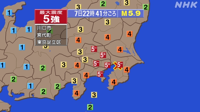 埼玉 川口 宮代町と東京足立区で震度5強 津波の心配なし - NHK NEWS WEB h