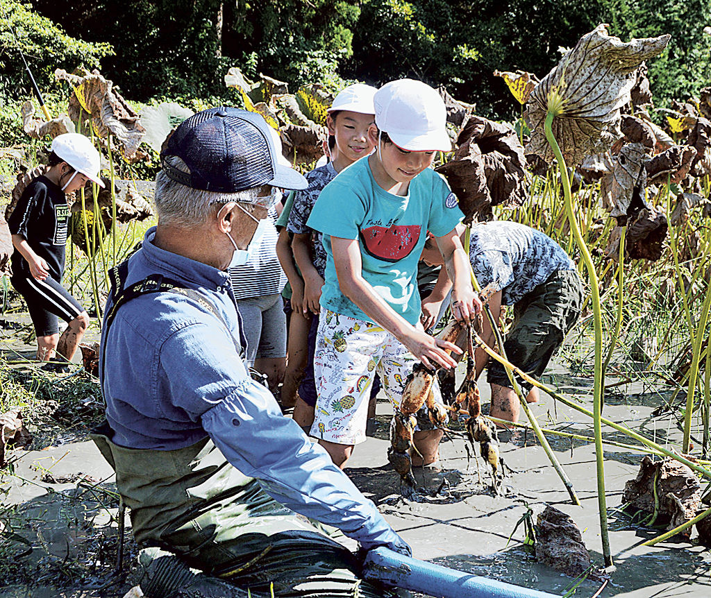 レンコン採れた! 掛川・和田岡小児童が奮闘|あなたの静岡新聞 - @S[ア