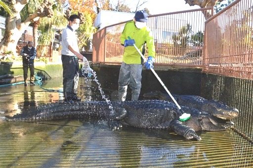 ワニもすっきり、迎春準備 年末風物詩の大掃除 東伊豆の動物園 - 47NEWS ht
