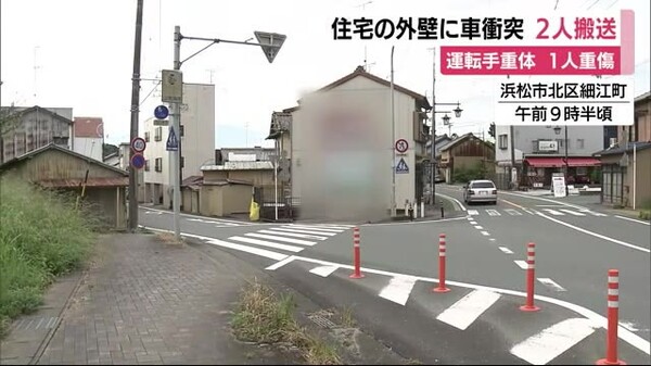 「車が家に突っ込んでいる」 Y字路交差点で衝突 1人重体・1人重傷 浜松市