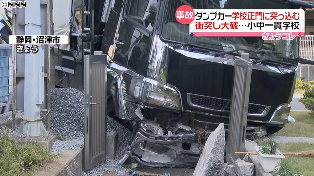 静岡県の学校の正門にダンプカーが衝突 登校時間の前で児童らにケガなし -