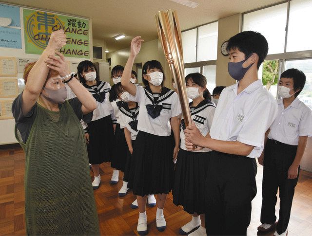 これがトーチだよ 菊川の藤原さんが母校で披露 - 47NEWS https://t.co/MoJz