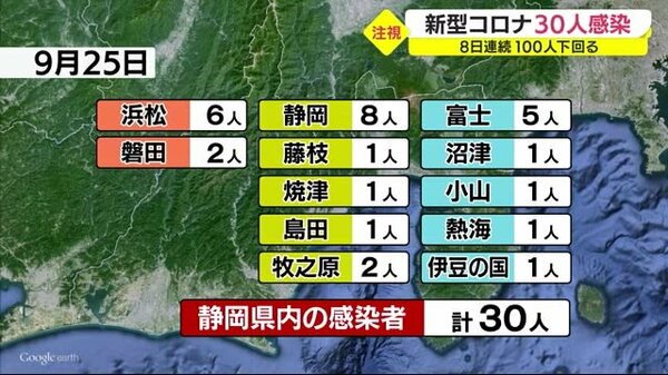 【静岡・新型コロナ】新規感染者30人 県「シルバーウィークで増加の可能